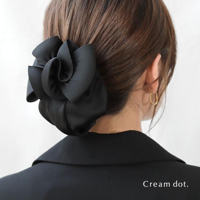 シニヨンネット付きの大きめリボンバレッタ。カタチを崩さない立体感ある大きめリボンがシニヨンスタイルを大人っぽくまとめてくれます。オフィスや冠婚葬祭など幅広いシーンに使えそう◎