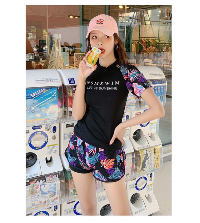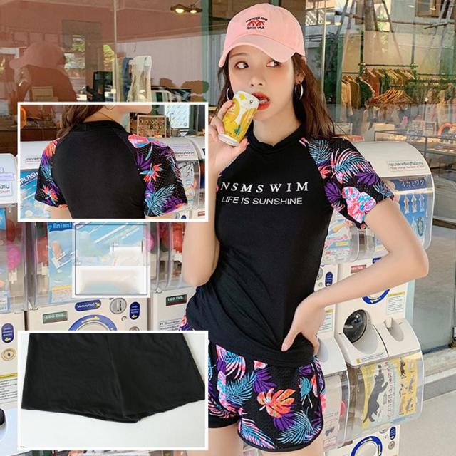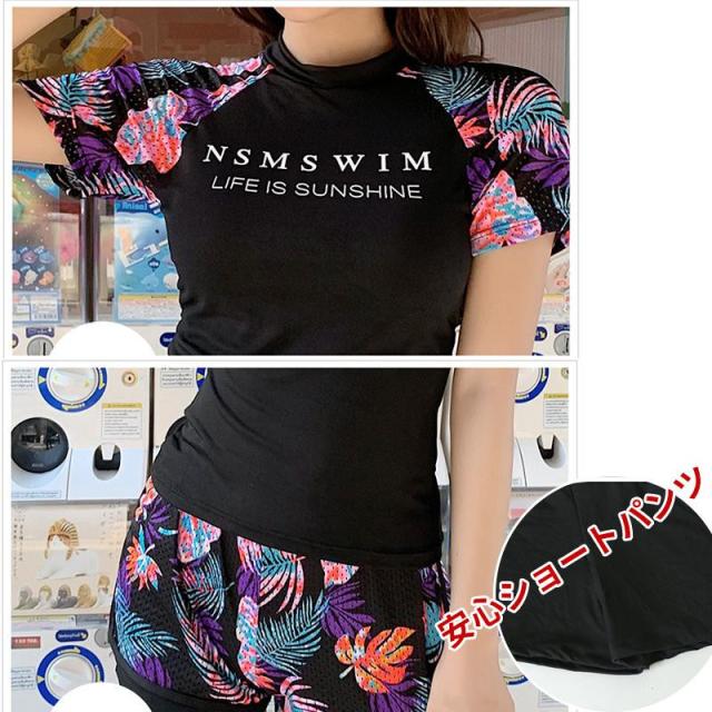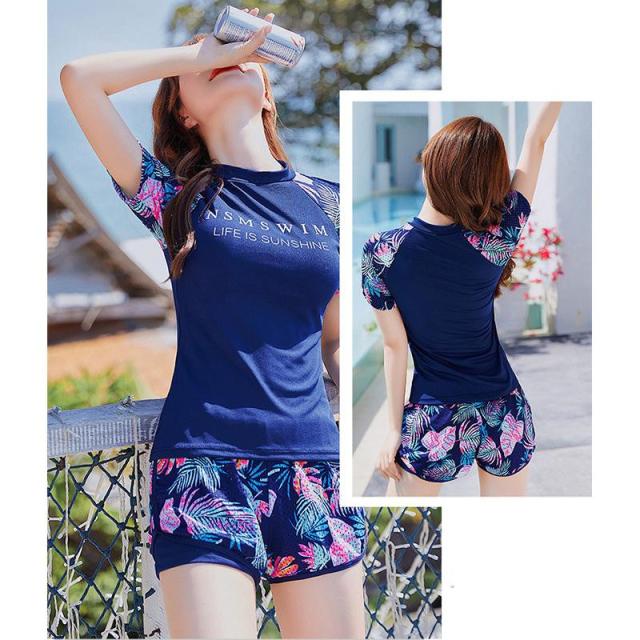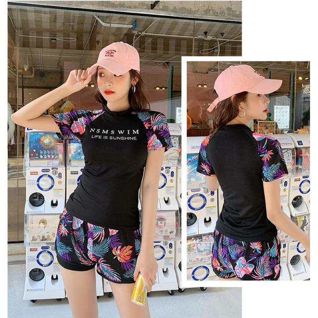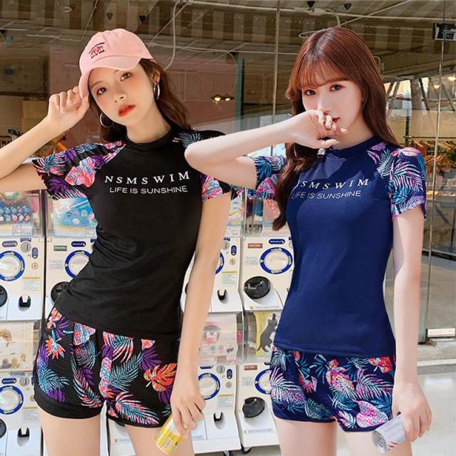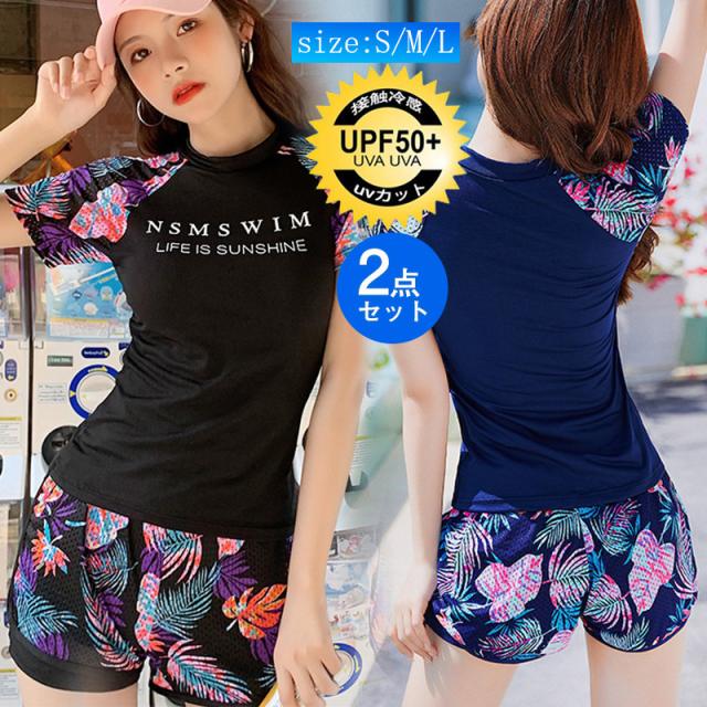 水着 レディース 2点セット ノンワイヤー 水着セット 花柄 体型カバー フィットネス水着 韓国風 カジュアル リラックス 海水浴