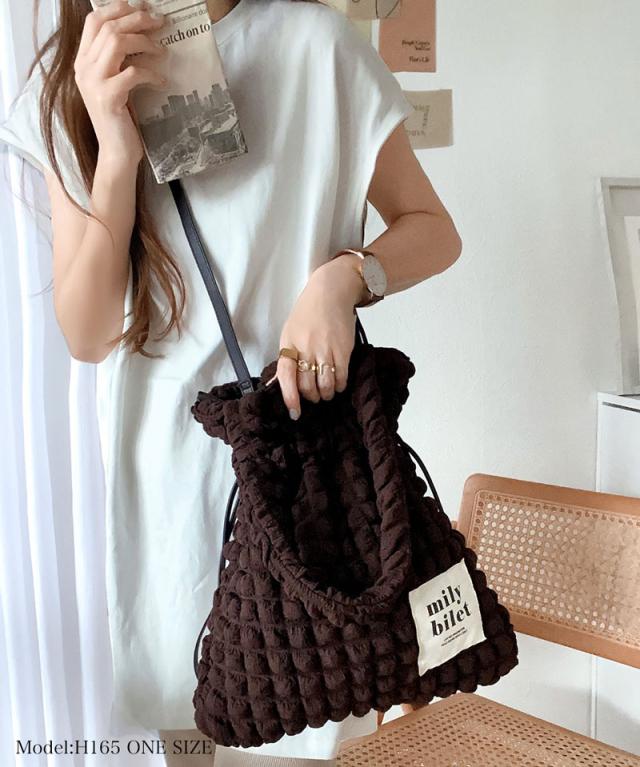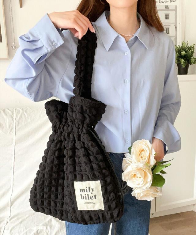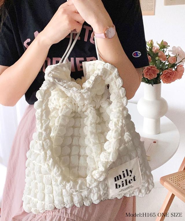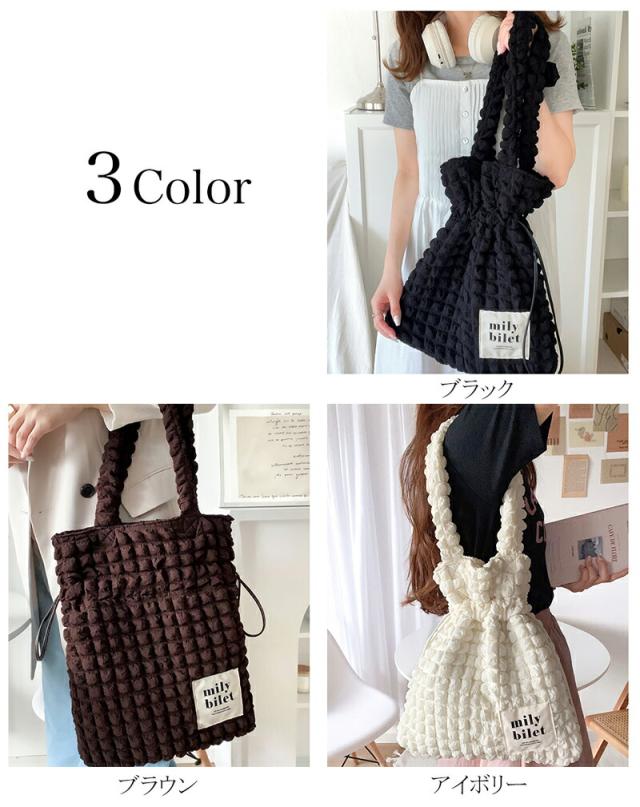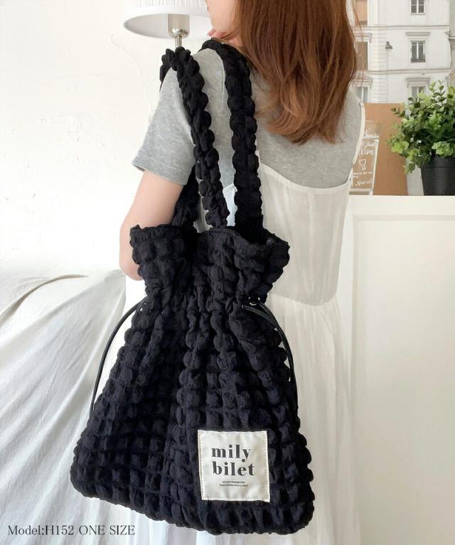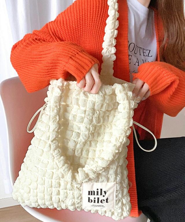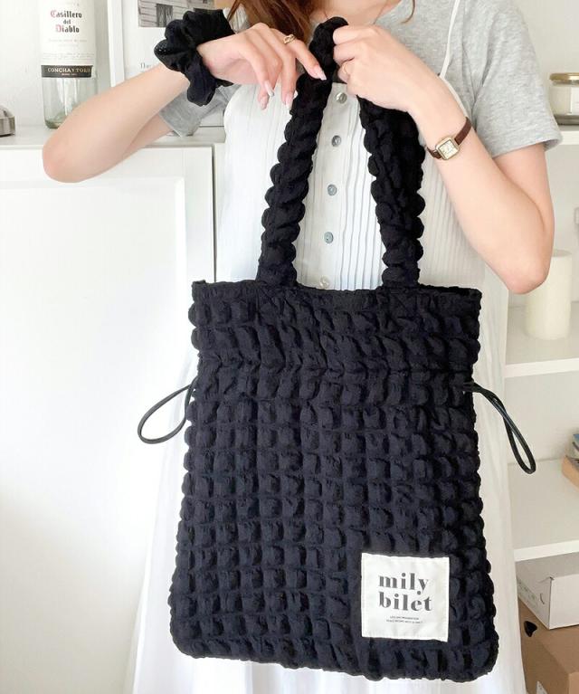 秋新作 クラシカルエルフ mily bilet バッグ トートバッグ レディース 凸凹 ポップコーン 2way 巾着 トートバッグ ショルダー A4サイズ 大容量 機能性 サイド スピンドル コード ぽこぽこ 素材 2023ss mi1159013