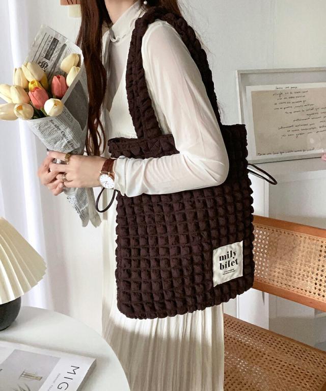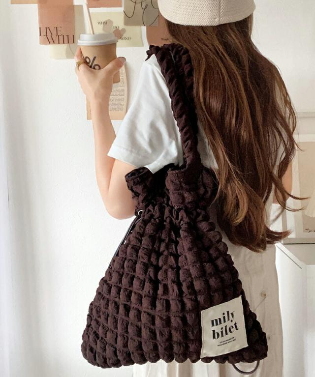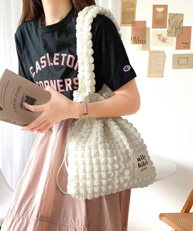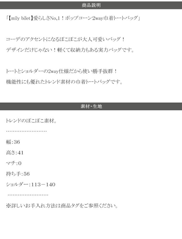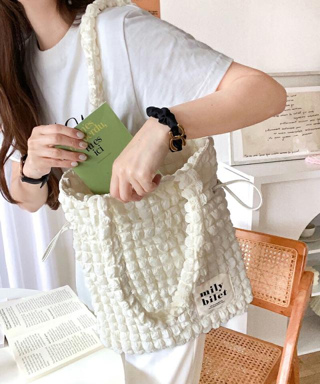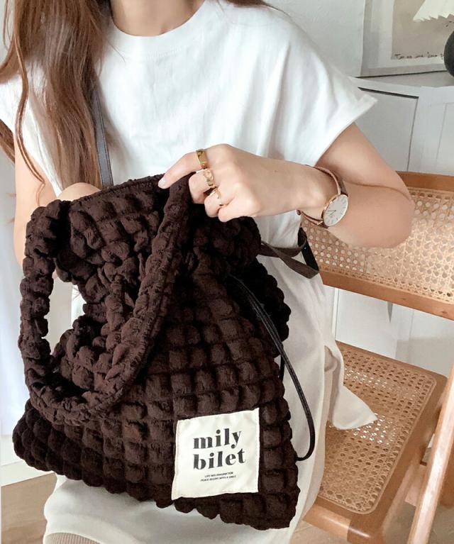 秋新作 クラシカルエルフ mily bilet バッグ トートバッグ レディース 凸凹 ポップコーン 2way 巾着 トートバッグ ショルダー A4サイズ 大容量 機能性 サイド スピンドル コード ぽこぽこ 素材 2023ss mi1159013