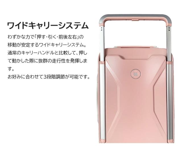 わずかな力で「押す・引く・前後左右」の移動が安定するワイドキャリーシステムです。