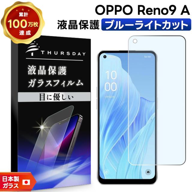 OPPO Reno9 A ブルーライトカット ガラスフィルム ガラス フィルム スマホフィルム 強化ガラス 液晶保護 飛散防止 硬度9H スマホ オッポ Reno 画面保護 保護フィルム Reno9A リノ 9a リノ9a ワイモバイル Y!mobile Ymobile 楽天モバイル SIMフリー 保護