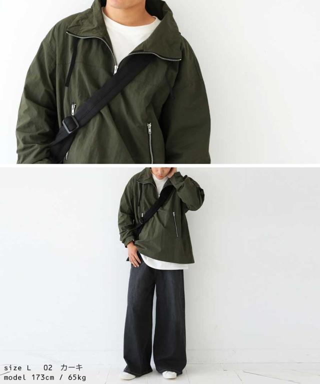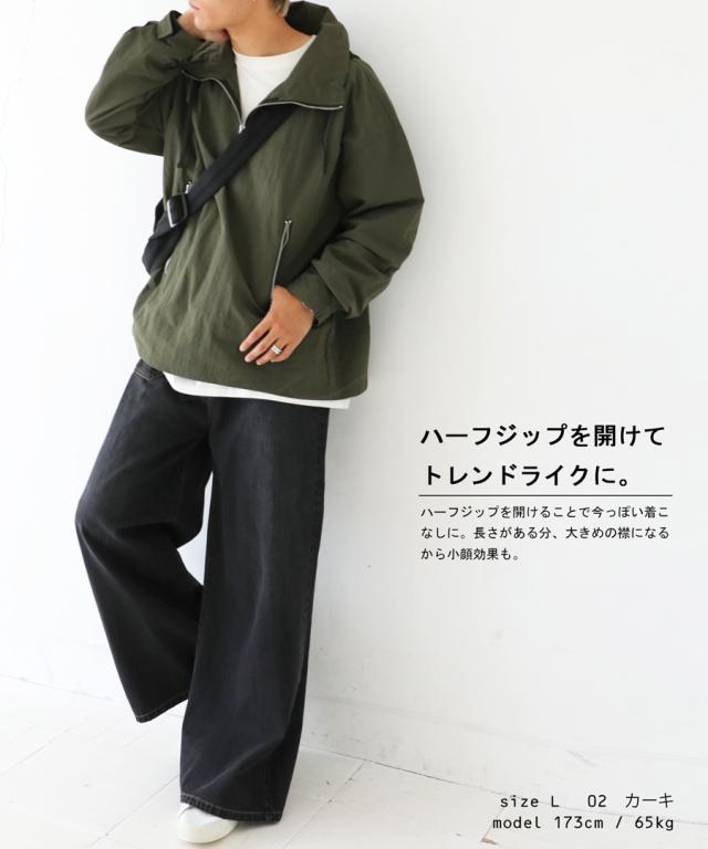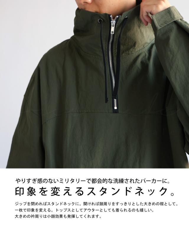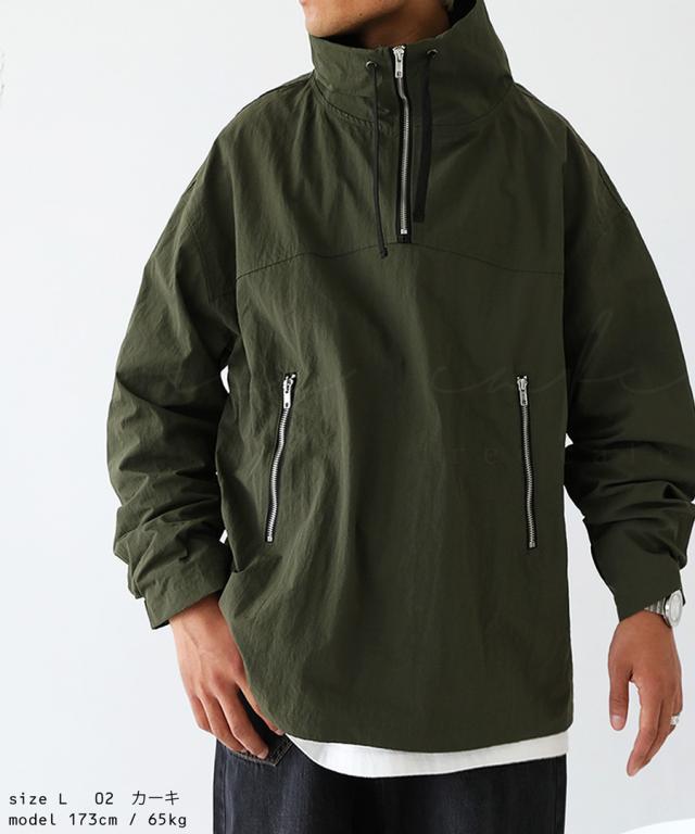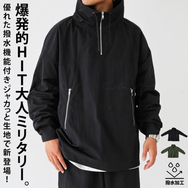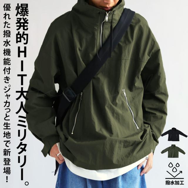 wtc-0011z 撥水加工 プルオーバー ジャケット パーカー ハーフジップ ハイネック ミリタリー ジャケット ゆったり サイズ展開 M L 大きめ 大きいサイズ ポケット付き 普段着