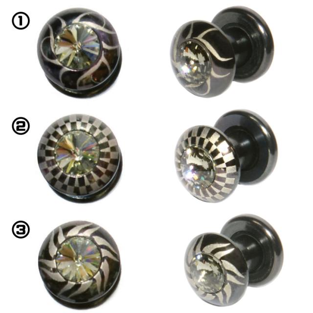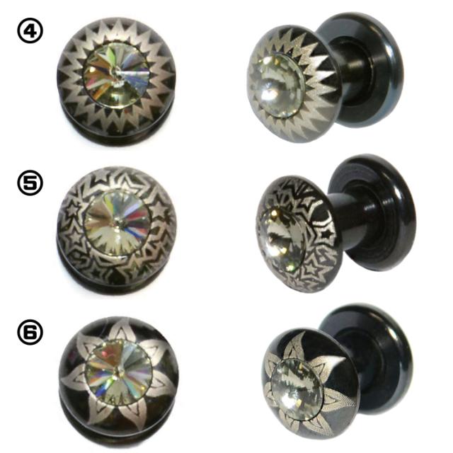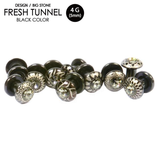 【メール便対応】フレッシュトンネル4G(5mm) ブラック 10種類 デザイン ラインストーン アイレット サージカルステンレス316L ジュエル付【ボディピアス ロブ サーキュラ バーベル CBR キャプティブ ビーズリング BCR ボール クロージャー リング】4ゲージ(5ミリ)┃