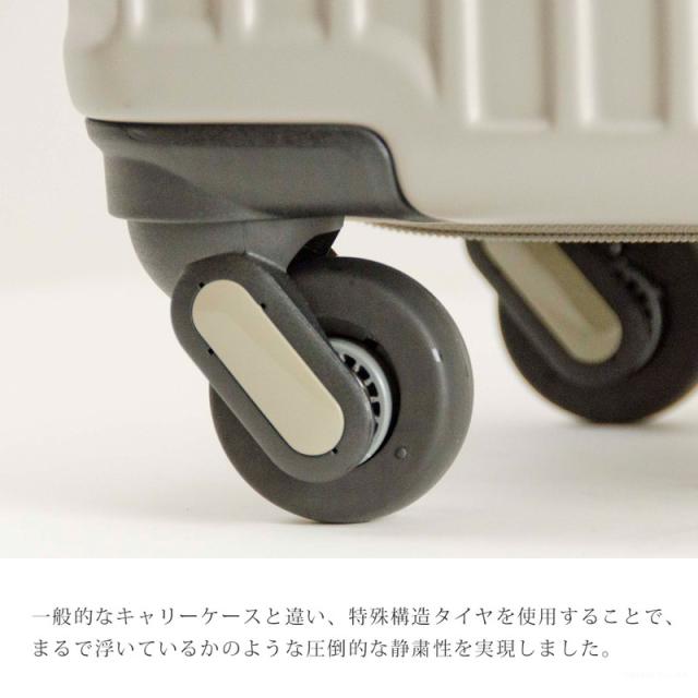 一般的なキャリーケースと違い、特殊構造タイヤを使用することで、まるで浮いているかのような圧倒的な静粛性を実現しました。