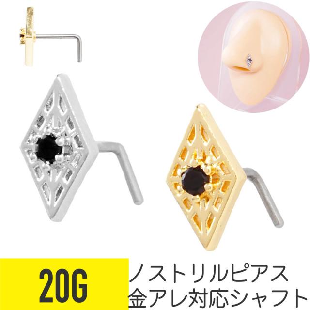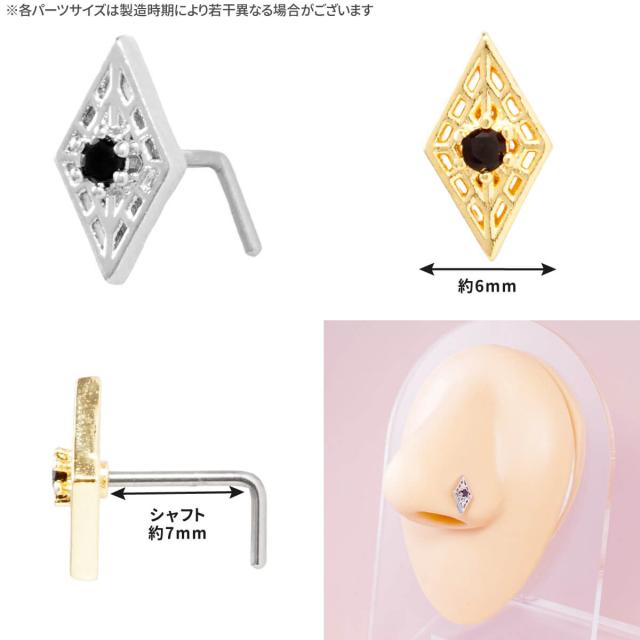 ブラック ストーン ダイヤ マーク ノストリル 鼻ピアス 20G ジルコニア ジュエル 軟骨 ボディピアス ダイヤ型 ひし形 L字 鼻ピ 鼻ぴ