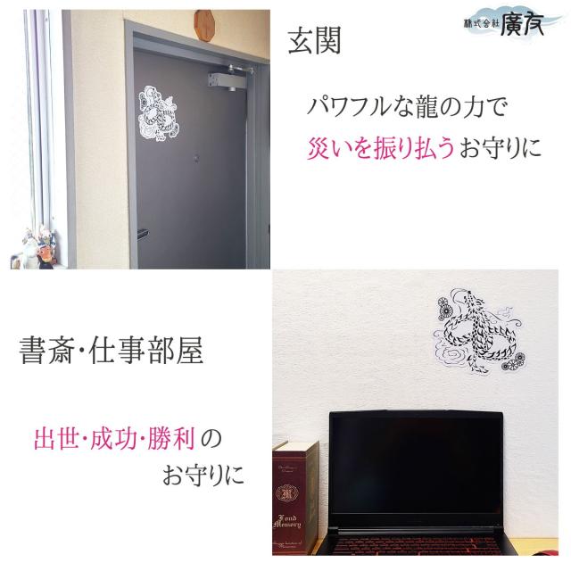 ペタッと 貼るだけ 風水 ウォールステッカー 玄関 青龍 ステッカー モノトーン お守り 金運祈願 開運祈願