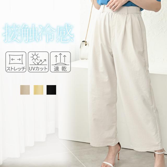 ワイドパンツ レディース きれいめ 接触冷感 パンツ タックワイドパンツ 夏 春 吸汗速乾 uvカット タック ワイド ストレート ウエストゴム パンツ ズボン ボトム オフィス 黒パンツ 黒 白 涼しい ロング ストレッチ ツータックパンツ 美脚パンツ カラーパンツ 黒ズボン