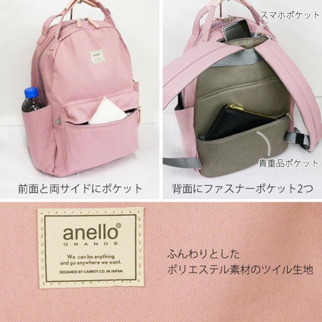 アネログランデ バッグ リュック デイパック レディース OL 学生 通勤 通学 旅行 A4 軽量 ミセス ママ 主婦 旅行 タウン デイリー お出かけ ポリエステル 合皮 ハンドル 手持ち ナチュラル シンプル 上品 ブランド ブラック 黒 ベージュ ブルーグレー ピンク ghm0551
