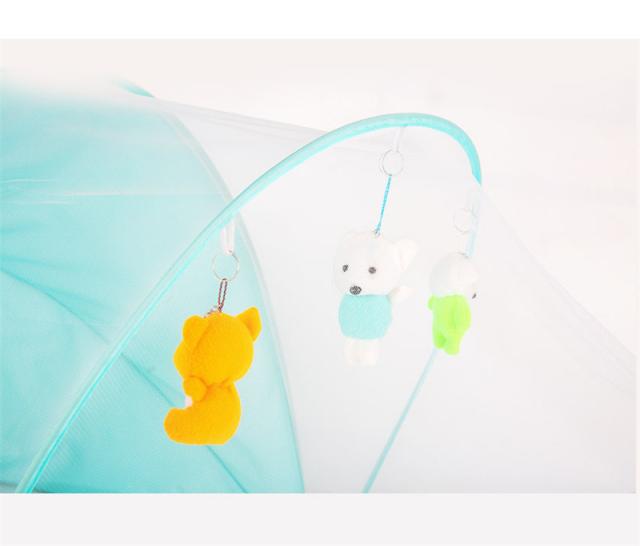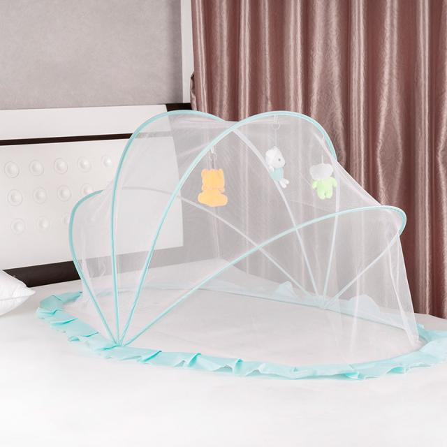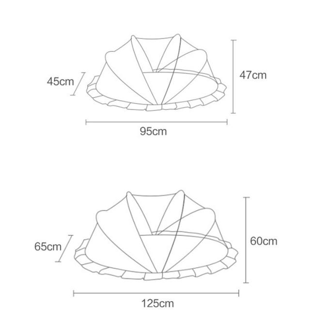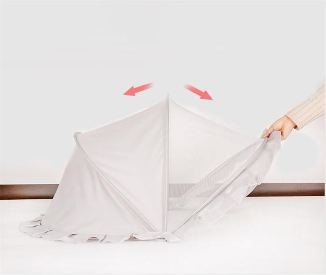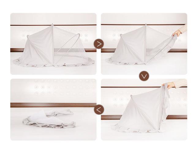 この蚊帳は底がなく、その周囲に虫よけ布があります。赤ちゃんを蚊や害虫から守ってくれます。また赤ちゃんが寝てもベッドから落ちるから守ってくれます。