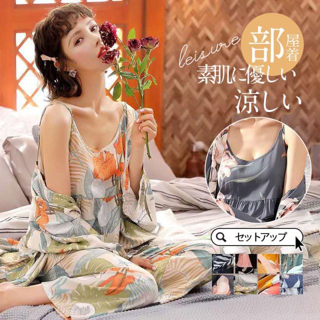 【水曜日まで!10%クーポン配布中】 パジャマ レディース セットアップ ルームウェア 上下セット 薄手 3点セット tシャツ 寝巻き 涼しい 半袖 春 夏 秋 母の日