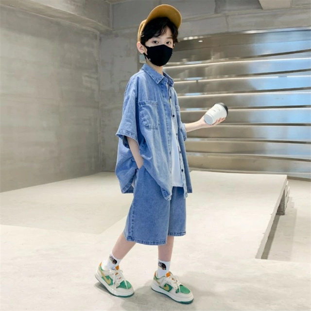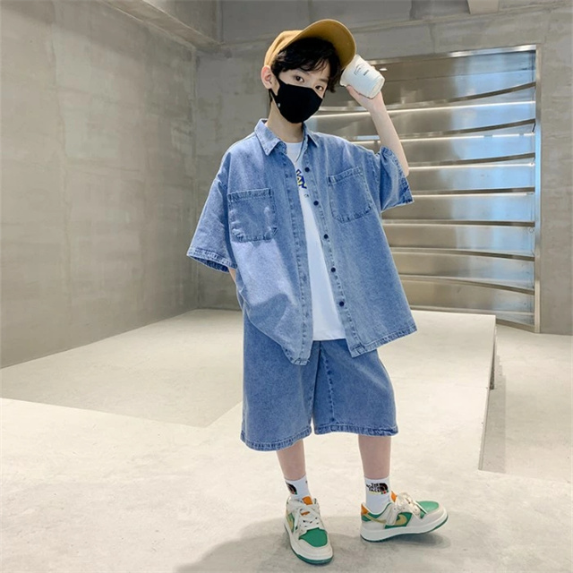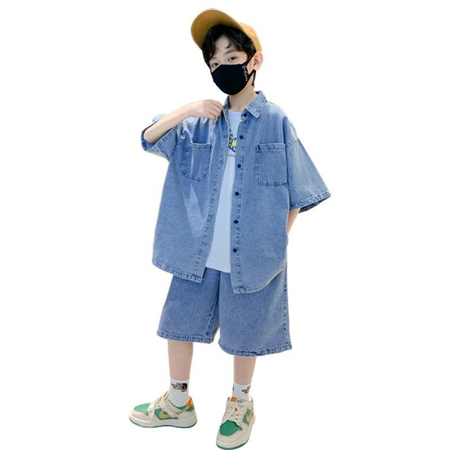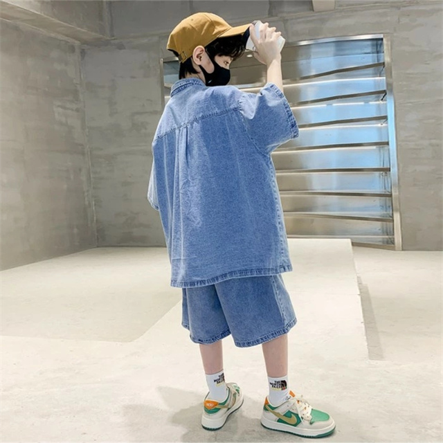 デニムセットアップ 男の子 夏 半袖 ハーフパンツ 運動 夏 通学 大きいサイズ 可愛い 韓国 子供 服 おしゃれ 小学生 幼稚園 中学生 高校生 120cm 130cm 140cm 150cm 160cm 170cm