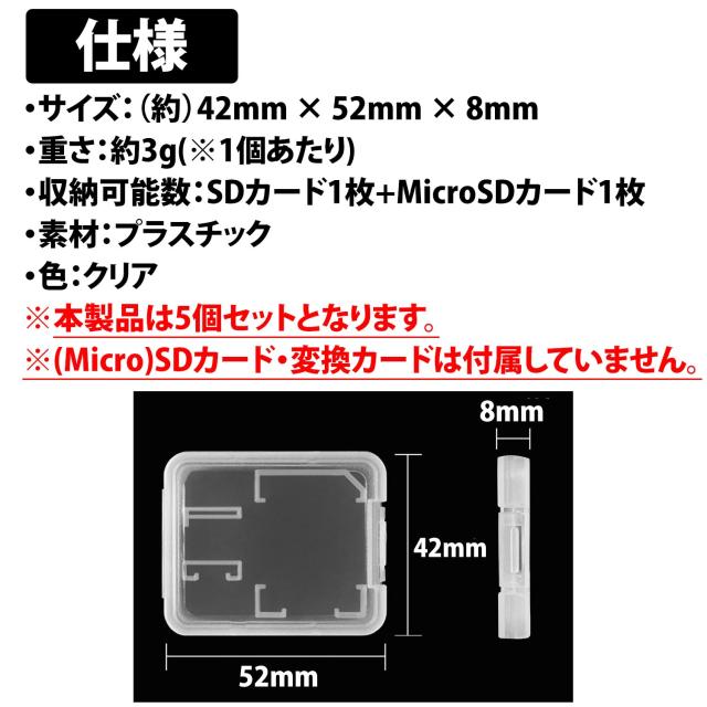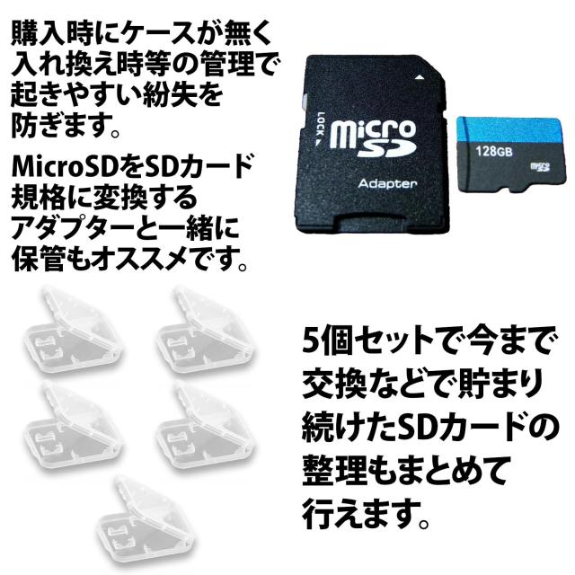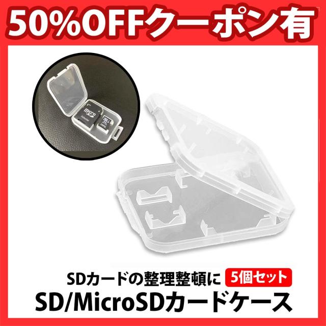 50%offクーポン有 SDカード microSDカード 5個 セット カードケース 収納 メディアケース 薄型 コンパクト 保管 整理 紛失防止 デジカメ スマホ SD microSD メモリーカード 携帯 持ち運び 収納 プラスチック ハードケース 衝撃 ほこり クリア 透明