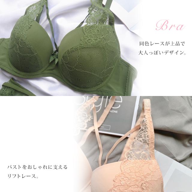 ストリングデザインと花柄レースが印象的。リフトレースでバストを支える大人のモールドブラセット