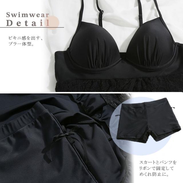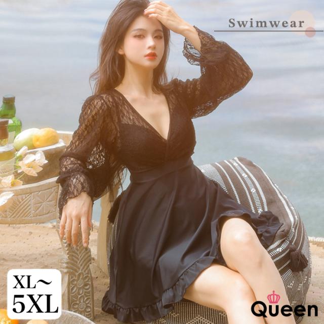 大きいサイズ 水着 レディース ワンピース パンツセット レース 黒 セクシー LL 3L 4L 5L 6L (m2217)