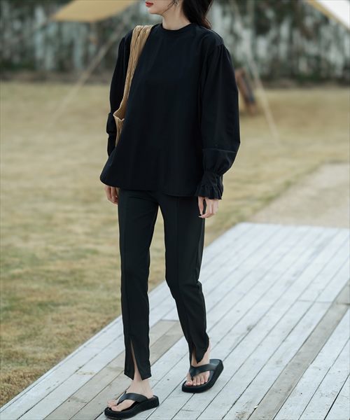レディース水着 長袖キャンディスリーブフリルラッシュガード+スリットパンツ 上下2点セット