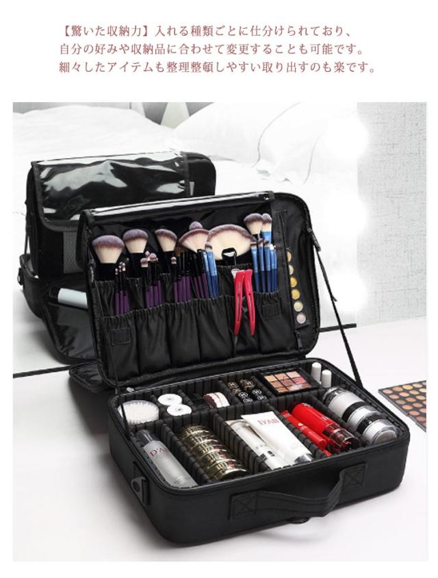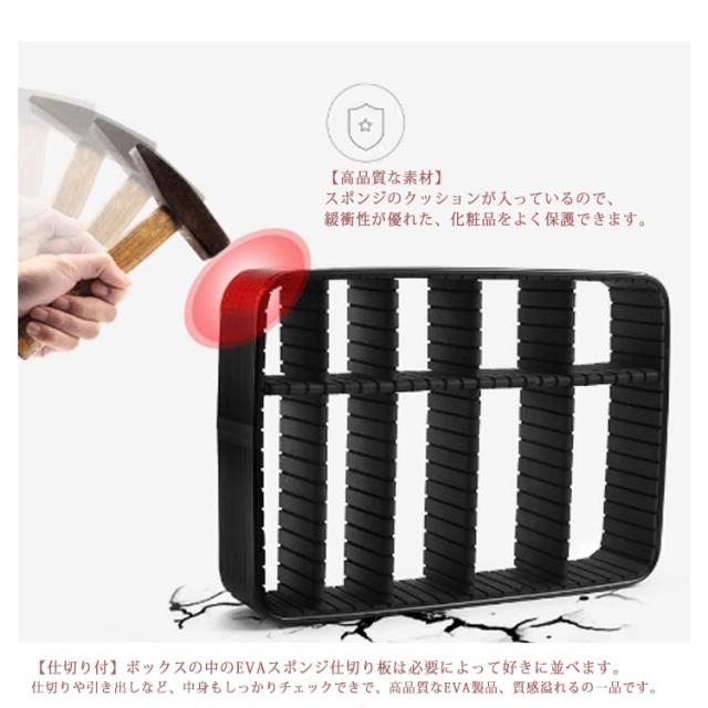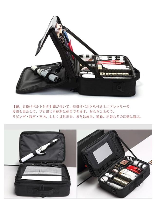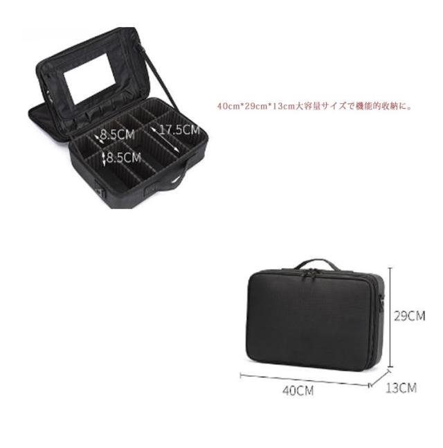 | 大容量・高機能性!プロ用コスメボックス 【高品質な素材】スポンジのクッションが入っているので、緩衝性が優れた、化粧品をよく保護できます。40cm*29cm*13cm大容量サイズで機能的收納に。 【仕切り付】ボックスの中のEVAスポンジ仕切り板は必要によって好きに並べます。仕切りや引き出しなど、中身もしっかりチェックできで、高品質なEVA製品、質感溢れるの一品です。 【驚いた収納力】入れる種類ごとに仕分けられており、自分の好みや収納品に合わせて変更することも可能です。細々したアイテムも整理整頓しやすい取り出すのも楽です。 【ファスナー式】頑丈なファスナー式で開けて使いたい物がすぐに見つけるし、外出先など移動時でも使いやすいです。 【鏡、肩掛けベルト付き】鏡が付いて、肩掛けベルトも付きミニドレッサーの役割も果たして、プロ用にも便利に使えできます。かなり入るので、リビング・寝室・室内、もしくは外出先,または旅行、通勤、出張などの活動に適応。 | |