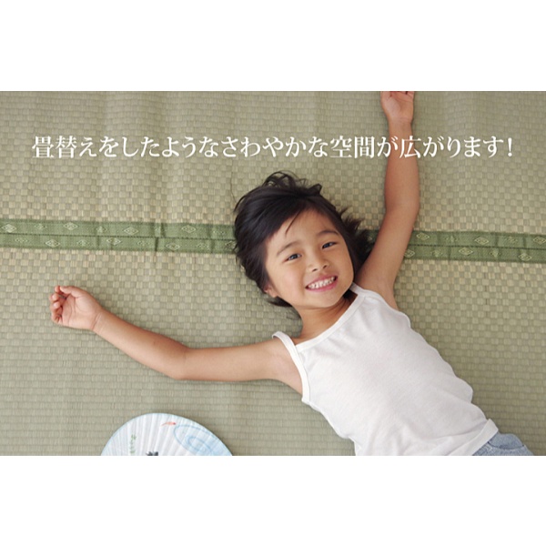 ■珍しい(ヘリ際のみ)市松柄の上敷きです。上敷きを敷くだけで畳のお部屋をリフレッシュ出来ます。日焼けしてしまった畳のリフレッシュに、新品の畳を汚さないためのカバーにご使用下さい。