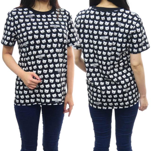 旧モデルセール! MOSCHINO UNDERWEAR モスキーノアンダーウェア Tシャツ レディース 半袖 クルーネック V2A0707 9420 ブラック×ホワイト
