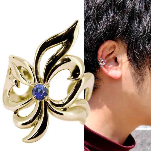 イヤーカフ メンズ サファイア 片耳用 イヤカフ かっこいい 百合の紋章 ユリ 10金 10k 大ぶり レディース