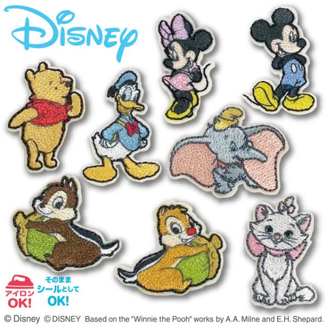 ミッキー&フレンズ チップとデール くまのプーさん ダンボ おしゃれキャットマリー ミニワッペン ディズニー アイロン シール かわいい 刺繍 キャラクター グッズ プレゼント 服