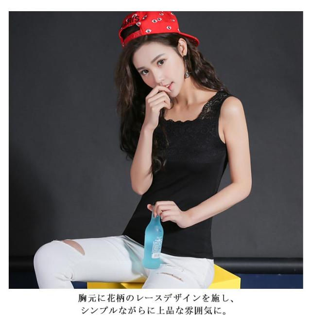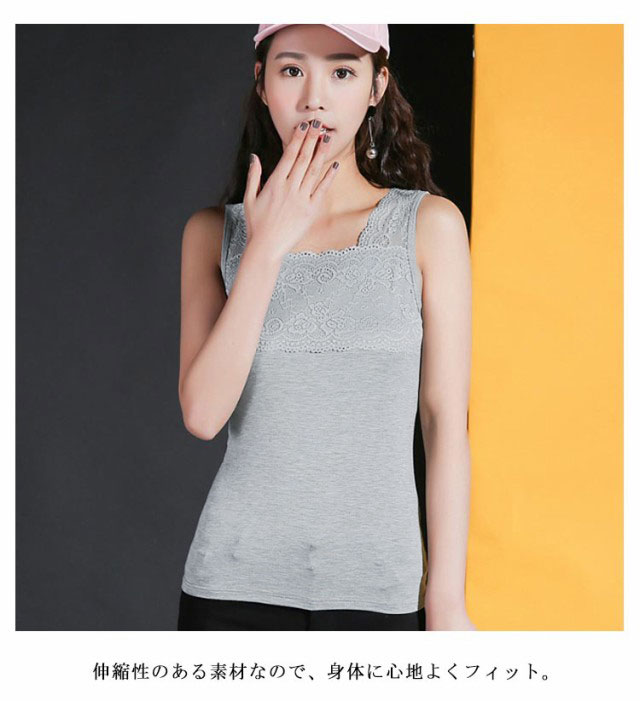 送料無料 ブラ紐隠しインナー タンクトップ 胸元レース レディース 肩紐広め タンク インナー トップス ノースリーブ レースキャミソール ブラ紐を隠せるインナー チラ見せ モダール ストレッチ 快適 肌着 夏 涼しい かわいい シンプル