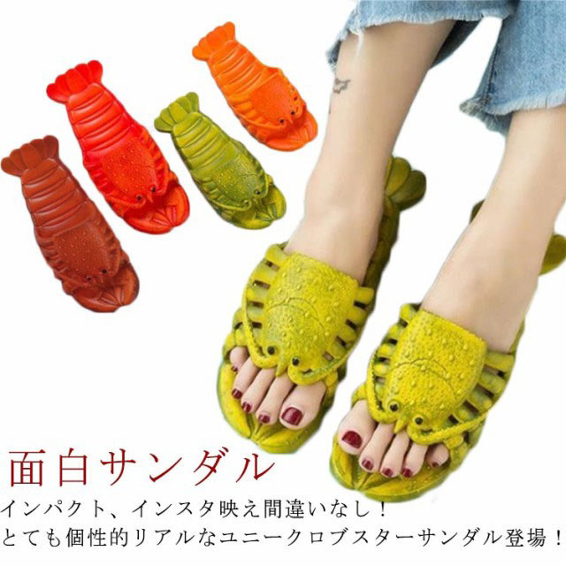 面白サンダル おもしろサンダル メンズ レディース 子供 ビーチサンダル ロブスターサンダル ペタンコ スリッパ 海老サンダル お揃い サンダル ビーチ遊び エビサンダル おしゃれ 履物 個性的 インスタ映え 15-27cm