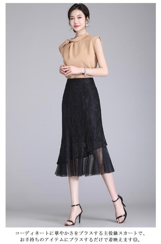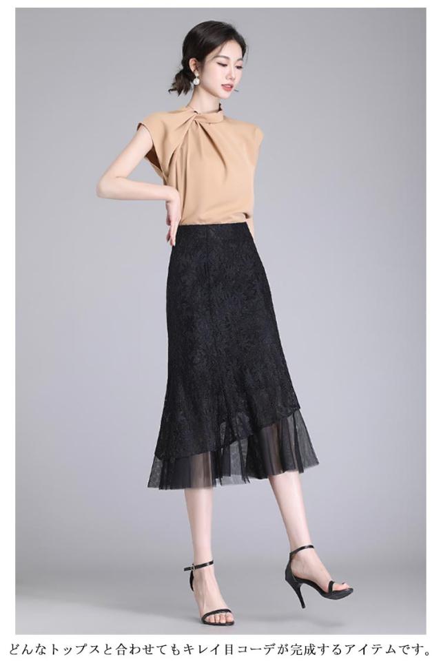 レーススカート タイト マーメイドスカート シアードッキング ひざ下丈 ミモレ丈 レース タイトスカート シアー 切り替え レディース 40代 30代 50代 きれいめ 上品 春夏用 秋 大人 エレガント フェミニン お出かけ 普段着 【送料無料】