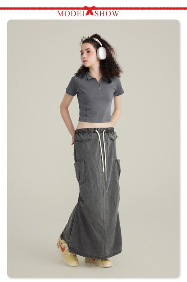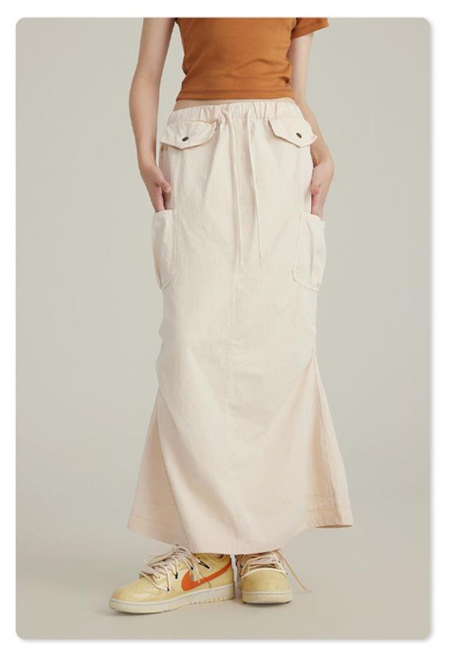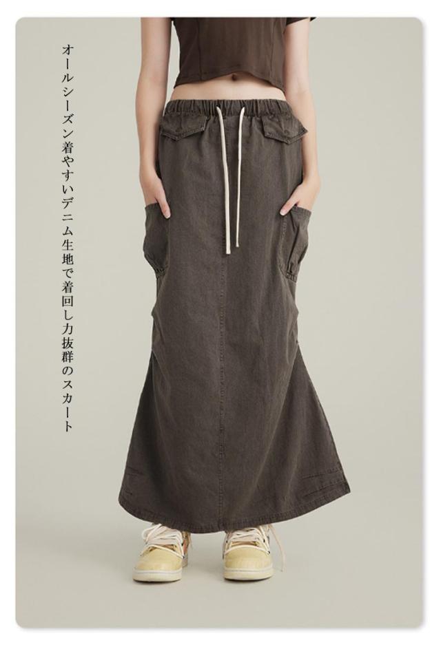 デニムスカート ミリタリースカート カーゴスカート 多ポケット レディース ロングスカート マキシ丈 カーゴ ミリタリー タイトスカート ゴムウエスト 綿 春 夏 秋 冬 レトロ風 ストリート カジュアル グレー ブラウン ブルー 【送料無料】