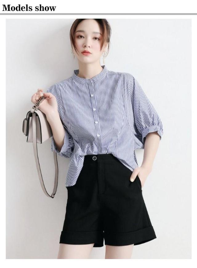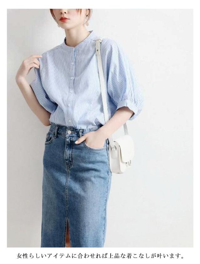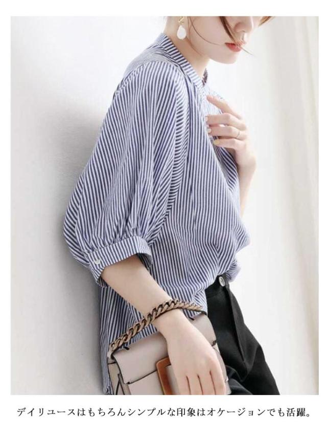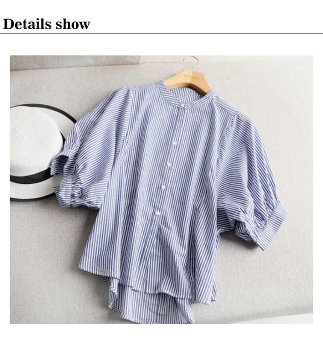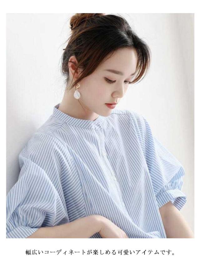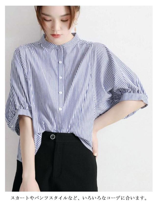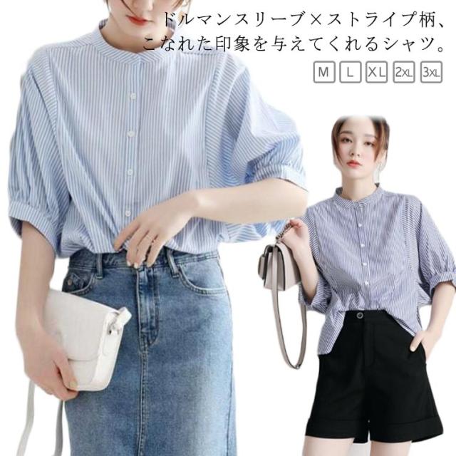 シャツ レディース おしゃれ 夏 ドルマンスリーブ スタンドカラー ストライプ柄 シャツブラウス ストライプ シャツ 立ち襟 襟付き シャツ 春夏 トップス M L XL 2XL 3XL