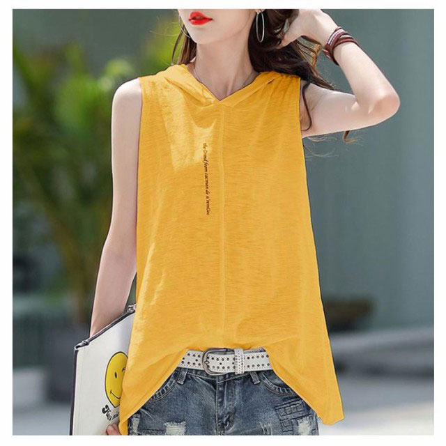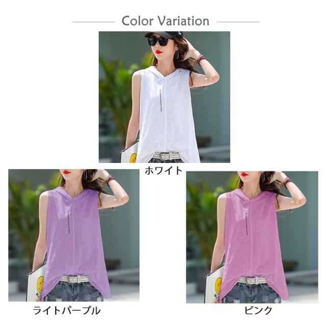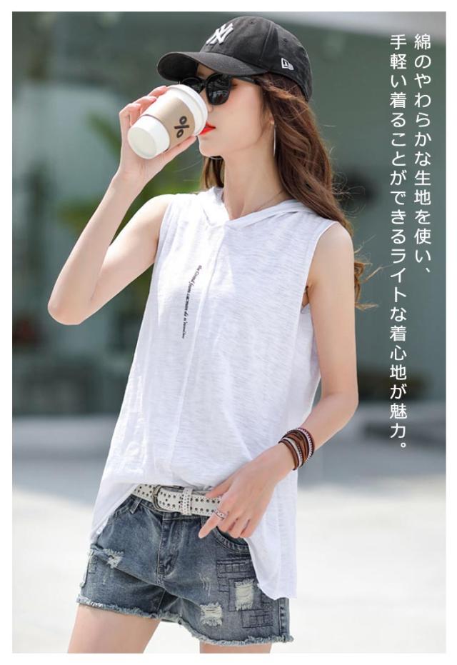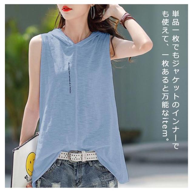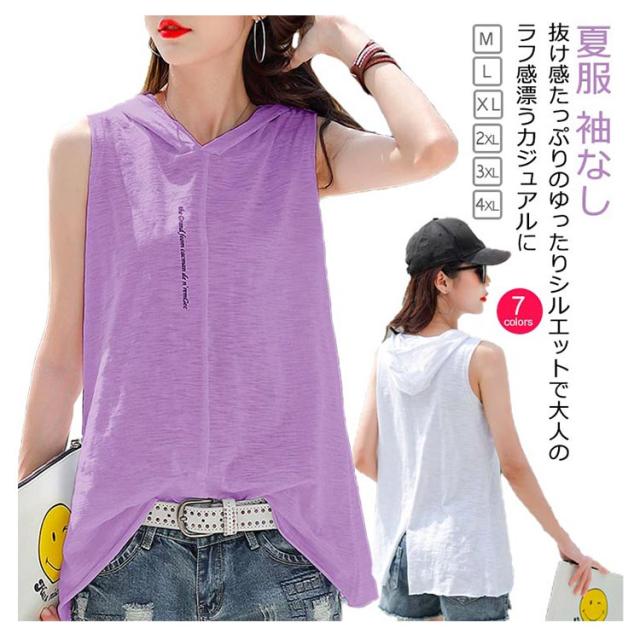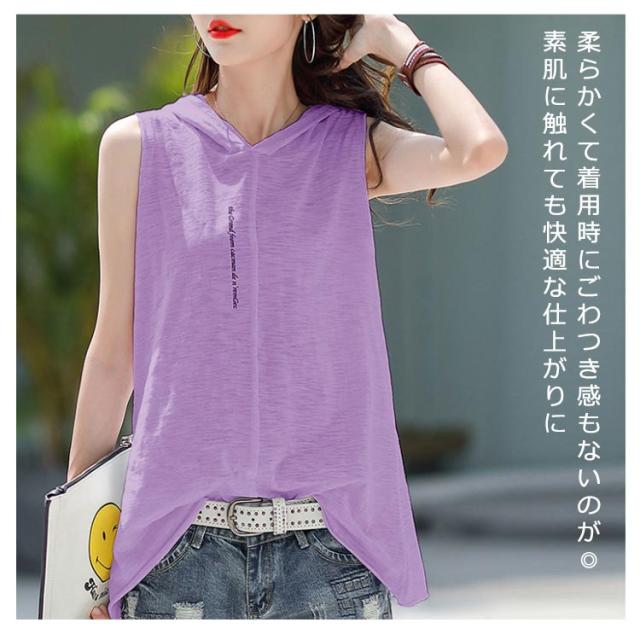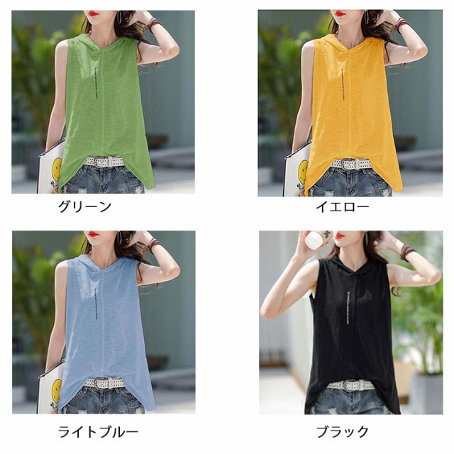 フード付き タンクトップ ノースリーブtシャツ ベスト 夏服 フード付きtシャツ レディース おしゃれ カジュアル 袖なし トップス プルオーバー 綿 コットン カットソー 春 夏 秋 服 シンプル 大きいサイズ 体型カバー ゆったり ギフト プレゼント 送料無料