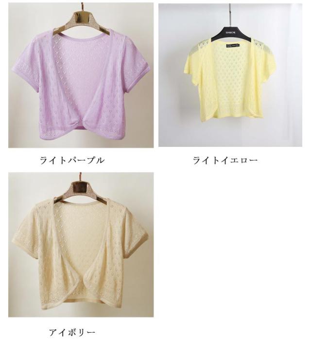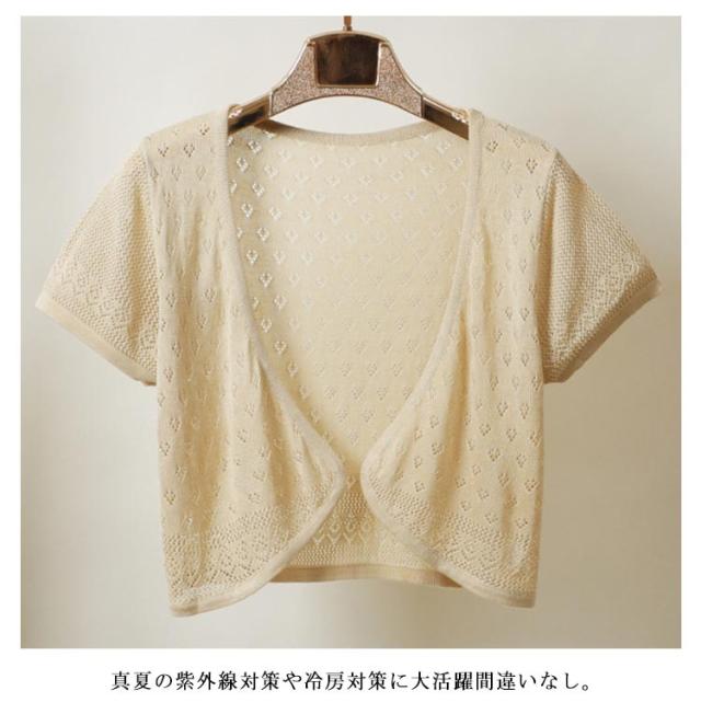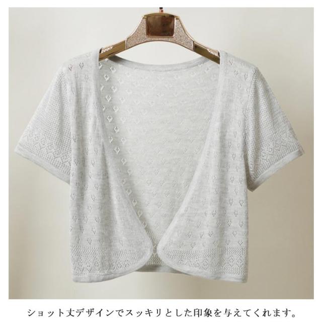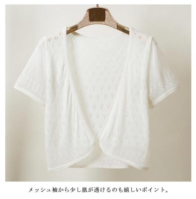 カーディガン レディース 薄手 透け感 半袖 サマーカーディガン ショート丈 おしゃれ きれいめ サマーニット 透かし 春夏 薄手 女性 上品 トップス 羽織り Vネック メッシュ袖 ひんやり 冷房 着?せ 大きいサイズ ギフト プレゼント 送料無料