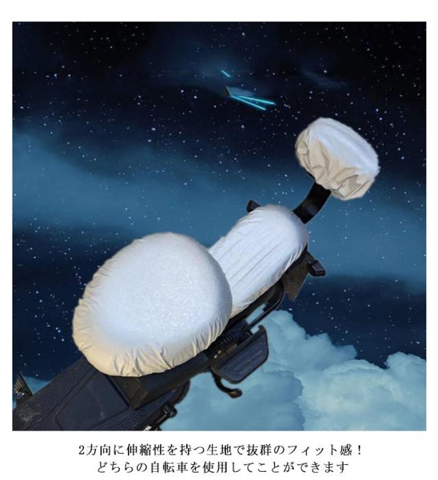 | 日焼け防止、撥水対策に!サドルにカンタンに取り付けられるカバーセットが登場! 日焼け防止に!紫外線を吸収&反射のブロックでより効果的! 突然の雨でも手元が濡れない「撥水加工」 2方向に伸縮性を持つ生地で抜群のフィット感!どちらの自転車を使用してことができます サドルのデザインや雰囲気を損なわずサドルの保護・補修にお使い頂けます 取り付けはお持ちのサドルにかぶせていいです | |