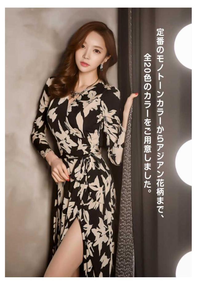| 全20タイプ!1枚持っておくと便利なきれいめ花柄ラップワンピース 定番のモノトーンカラーからアジアン花柄まで、全20色のカラーをご用意しました。 エレガントで着やすいデザインをぐっと華やかに印象アップ。 フィット&程よいロング丈は気になるヒップを優しく包み込んで着こなしを優雅に見せます。 爽やかな生地感、伸縮性も抜群で、ふんわり快適な着心地を実現。 深く切り込んだ胸元がとってもセクシーでリゾート感たっぷり! 深めのスリットデザインが美脚効果も期待できます♪ | |