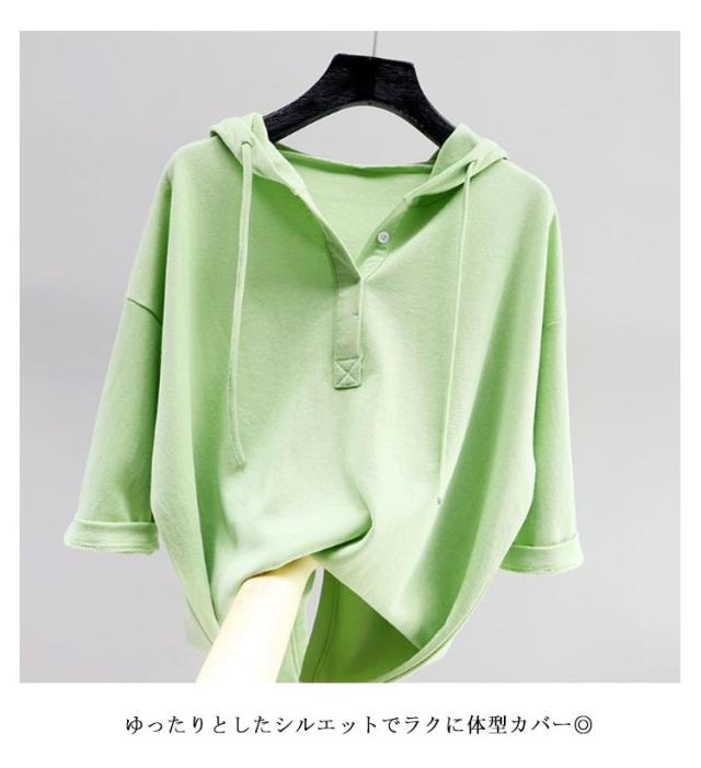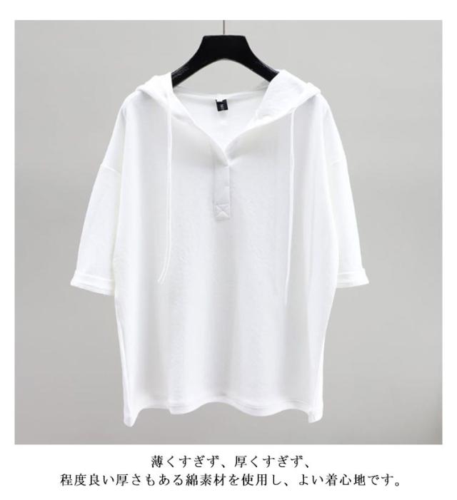 送料無料 Tシャツ 半袖 フード付き カットソー 送料無料 フード付きTシャツ レディース 薄手 無地 tシャツ プルオーバー 夏 パーカーtシャツ フーディー トップス シンプル 無地 春服 綿 コットン カジュアル 春服 夏服