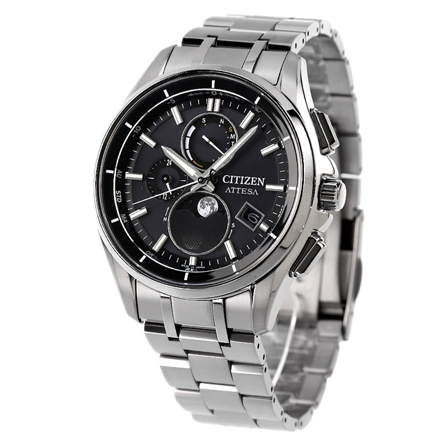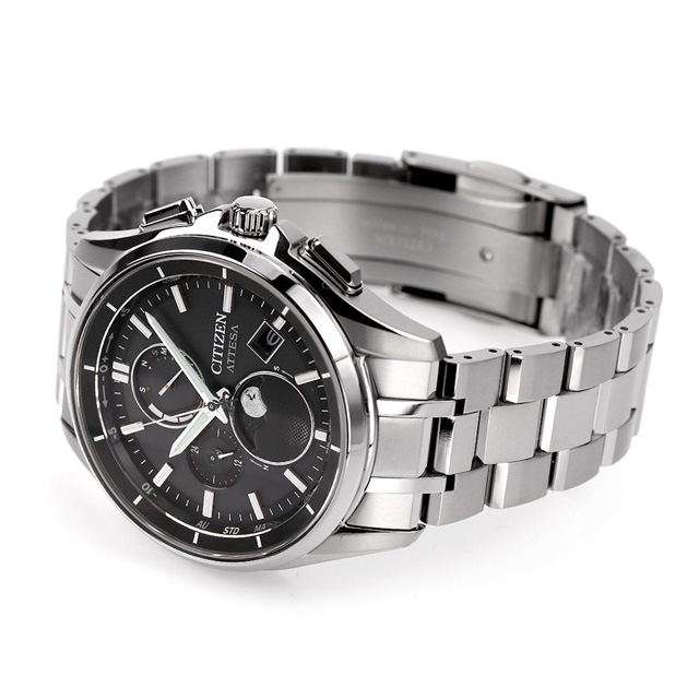 シチズン アテッサ 光発電エコ・ドライブ電波時計 ダイレクトフライト ムーンフェイズ 光発電エコドライブ電波 腕時計 ブランド メンズ チタン ムーンフェイズ ソーラー電波 CITIZEN ATTESA BY1001-66E アナログ ブラック 黒 日本製