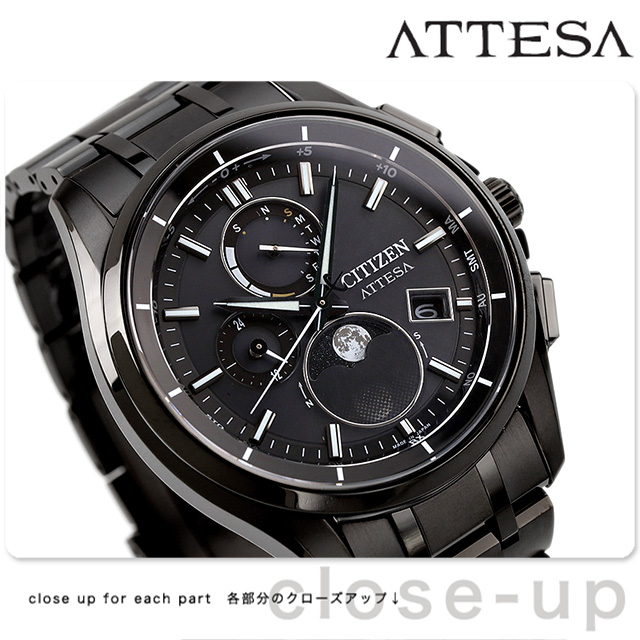 シチズン アテッサ 光発電エコ・ドライブ電波時計 ダイレクトフライト ムーンフェイズ 光発電エコドライブ電波 腕時計 ブランド メンズ チタン ムーンフェイズ ソーラー電波 CITIZEN ATTESA BY1006-62E アナログ オールブラック 黒 日本製 記念品 ギフト