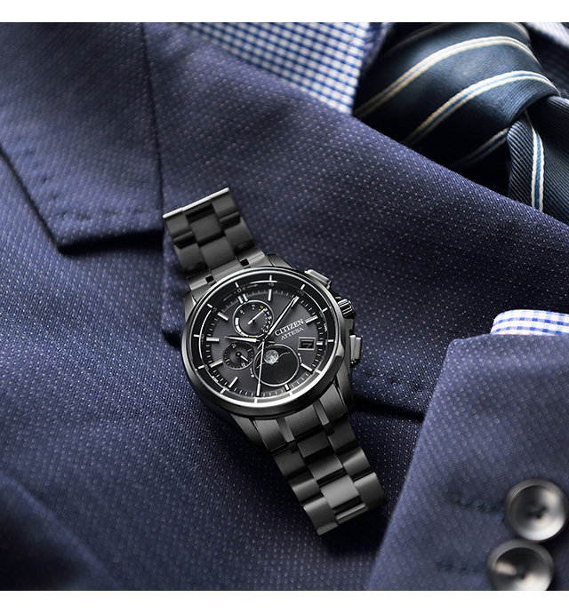 正規品 7年保証キャンペーン 送料無料 シチズン アテッサ 光発電エコ・ドライブ電波時計 ダイレクトフライト ムーンフェイズ チタン ソーラー電波 日本製 メンズ 腕時計 BY1006-62E CITIZEN ATTESA Eco-Drive アナログ オールブラック 黒 ◆アナログ式光発電腕時計で世界初の月齢自動計算機能「ルナプログラム」を搭載したモデルがデビュー。根強い人気を誇るAT8040シリーズのケース形状をベースに、新キャリバーを搭載したムーンフェイズウオッチ。電波を使った月齢自動計算機能「ルナプログラム」を搭載。受信した時刻情報から、ムーブ内部の独自の計算式を使ってその時点での月齢を計算し、6時位置にその様相を表現します。ケースのエッジ感をベースモデルよりも強調し、足部分もより美しくのびやかなデザインに。スポーティさを残しつつもエレガントな印象をひときわ高めています。ムーンフェイズ部分には、印刷と金属電着を生かした技術を使い、星空の中で美しく輝くシルバームーンを表現。隠れたもう一つの月の動きも楽しめるよう、円盤針に重なる上面の文字板をあえてグラデーション状に透けさせています。 発売日:2023年7月発売
