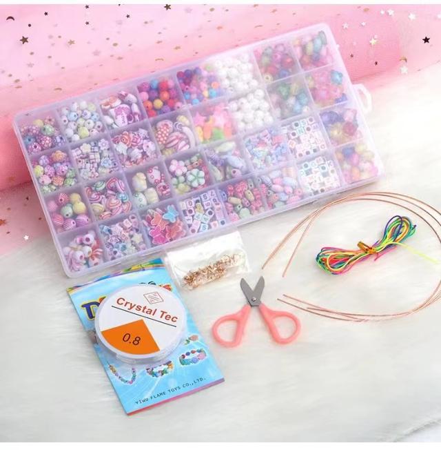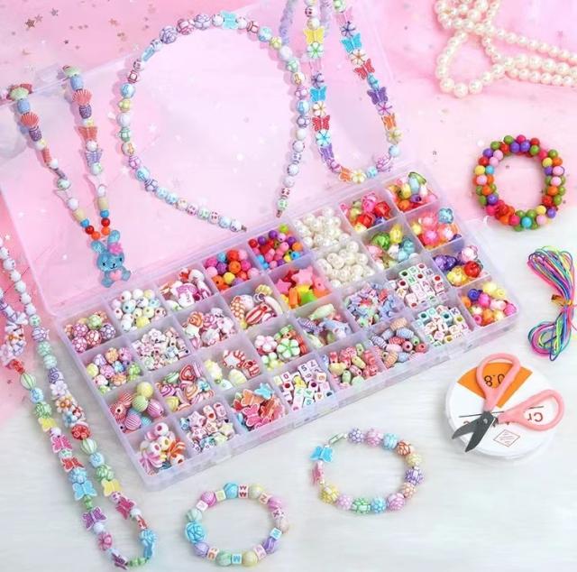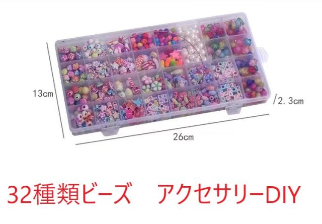 ビーズ おもちゃ 女の子 DIY ビーズ 知育玩具 アクセサリーセット 32種類ビーズ ブレスレット ネックレス 収納ケース付き ハンドメイド 手作りキット 子供 誕生日 プレゼント ファンシービーズ アクセサリー ビーズキット パーツ 子ども