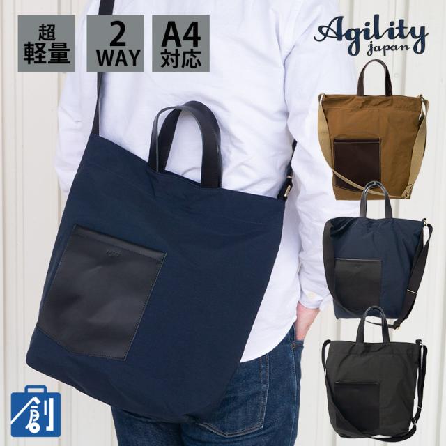 ショルダーバッグ メンズ レディース トートバッグ 手提げ a4 2way 軽量 軽い 斜めがけ 男女兼用 ナイロン 撥水 革付属 シンプル おしゃれ 大人 ブランド 日本製 AGILITY アジリティ 2WAYショルダーバッグ 0786