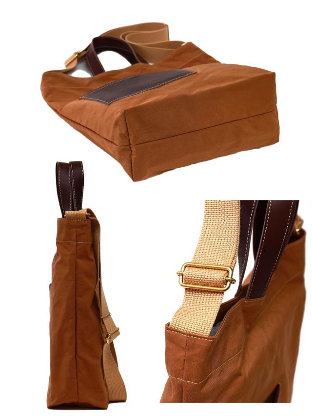 ■さらっとした肌さわりの撥水加工を施したナイロンに厚みのある牛革を組み合わせた大人カジュアルな2WAYショルダーです。手提もしくはショルダーにしてお使いいただけます。