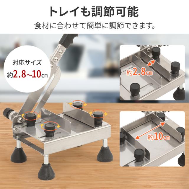 厚さやトレイの大きさはダイヤルを回すだけで簡単に調節することができます。