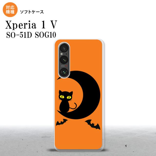 Xperia 1V Xperia 1V スマホケース 背面ケースソフトケース ハロウィン 月と猫 オレンジ