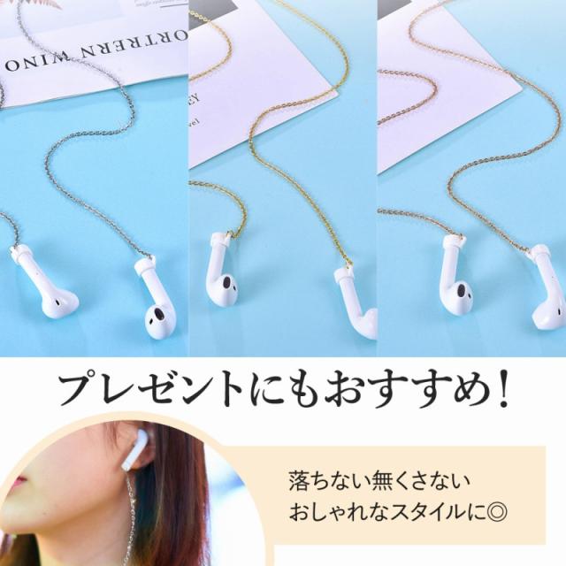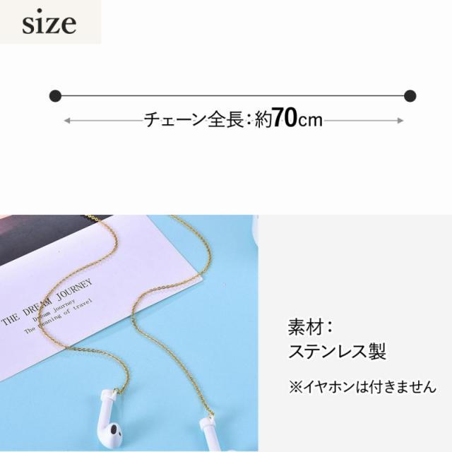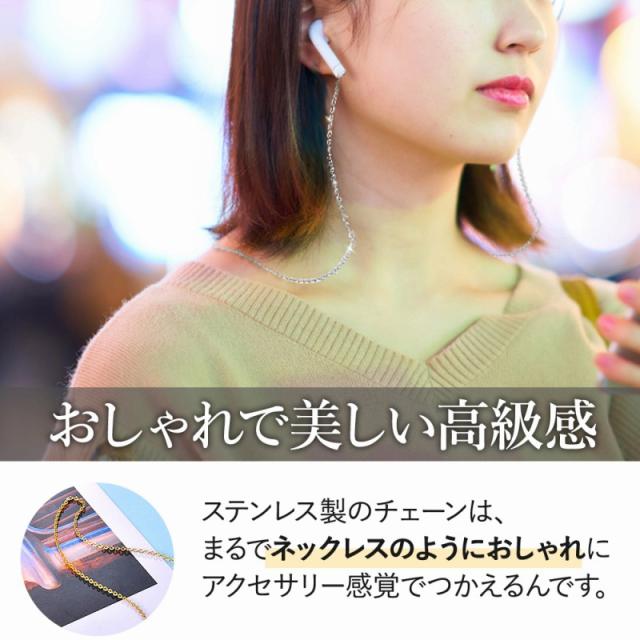ワイヤレス イヤホン ストラップ チェーン おしゃれ 高級感 AirPods Pro 落下防止 首掛け 軽量 紛失防止 トレーニング 散歩 通勤 ゴールド 人気 おすすめ agesugi_ska