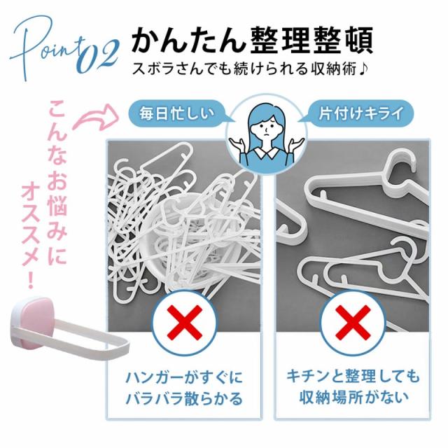 洗濯機の横などに貼り付けると、衣類乾燥後すぐにハンガー掛けができて便利です。