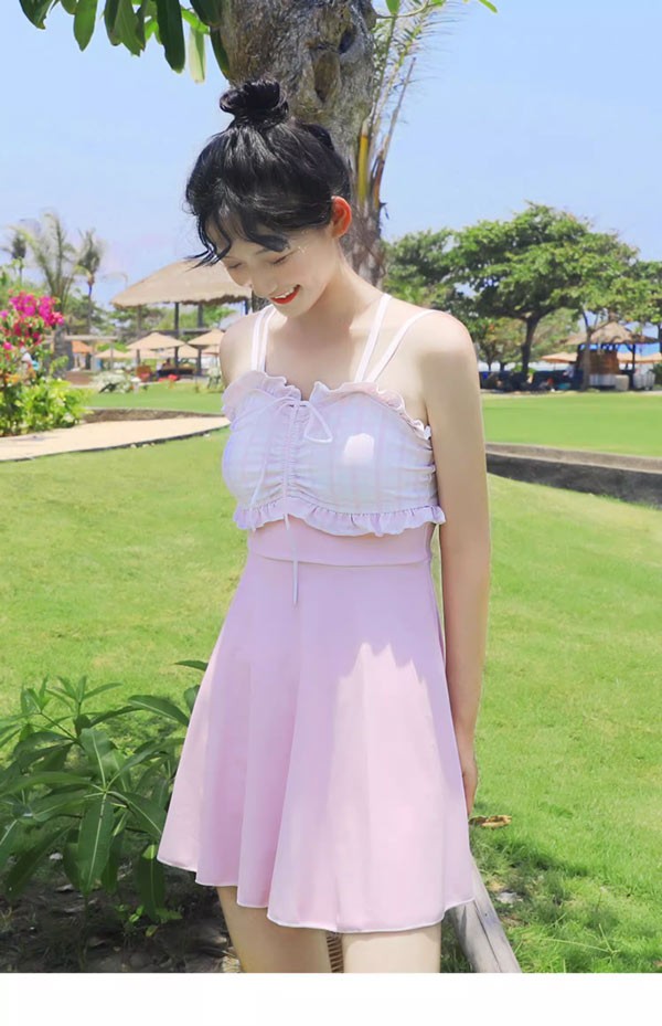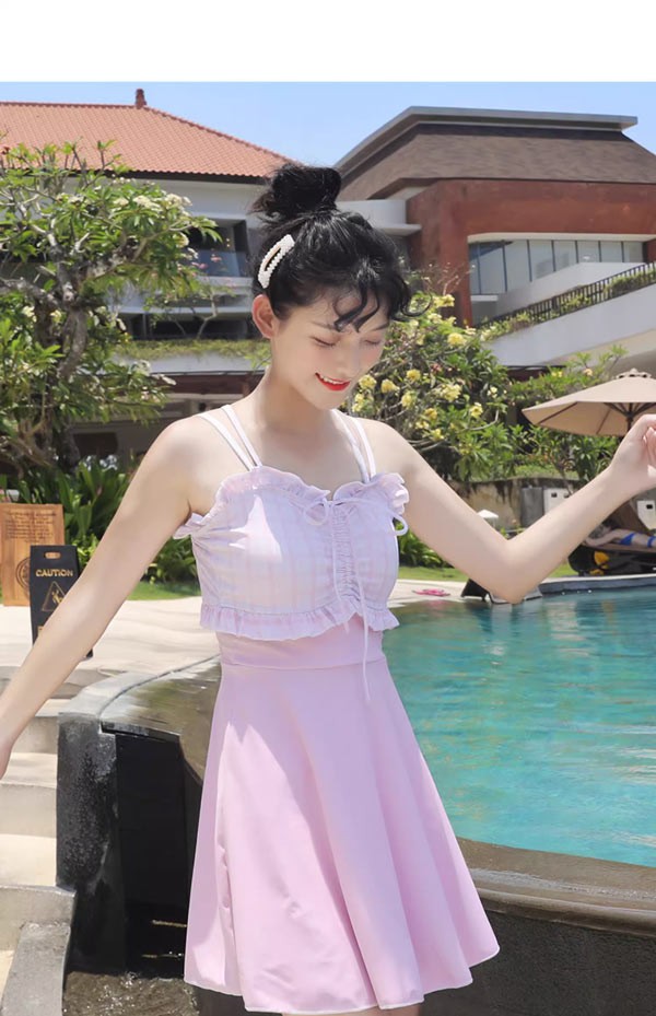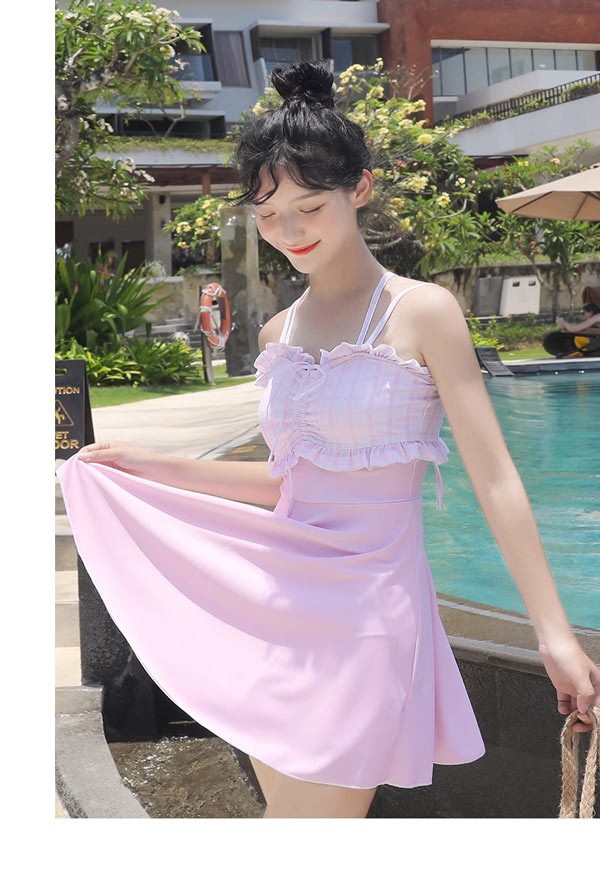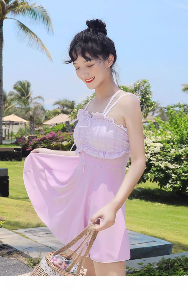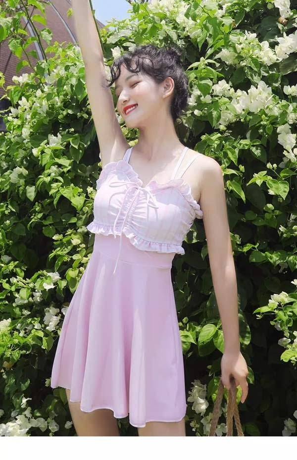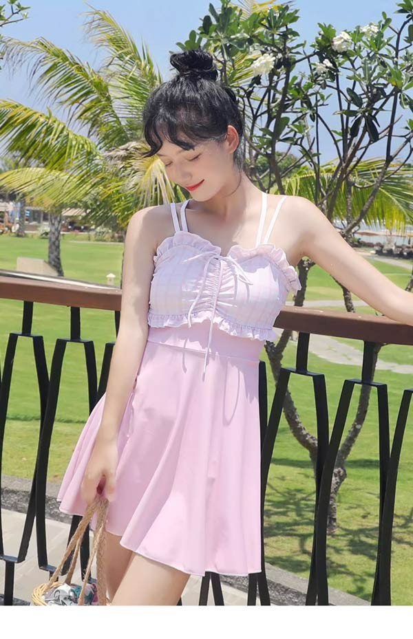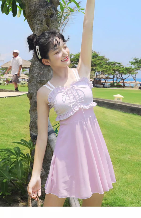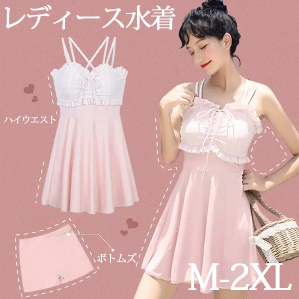 【レビュー投稿で+5%還元】ワンピース水着 水着 2点セット リボン ノースリーブ ワイヤーなし パッド付 レディース 着?せ シンプル セクシー 写真映え 撮影用 海 夏 サマー プール リゾート かわいい 旅行 温泉 大人 女性用 ジュニア 学生 女の子 ピンク