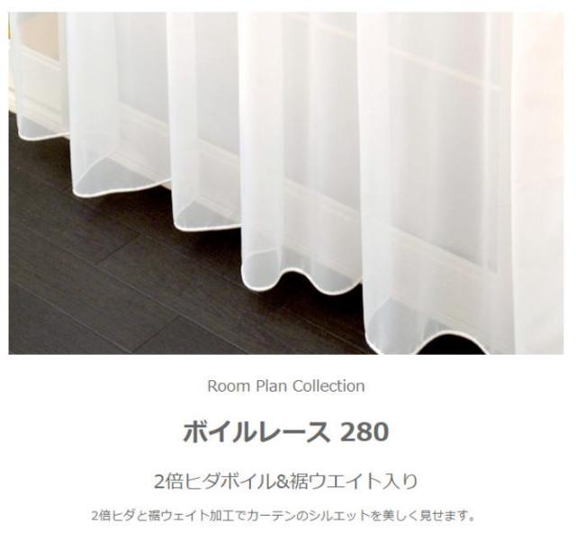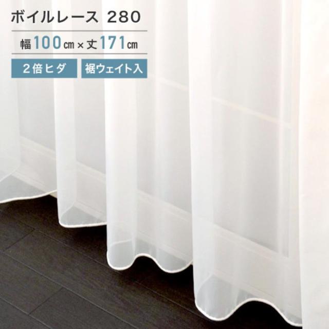 ボイルレース 280 ホワイト 2枚組 100x171cm (ho-280-1173) 2倍ヒダ 裾ウェイト レース カーテン