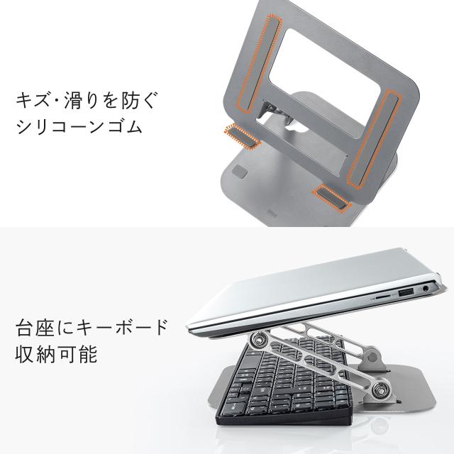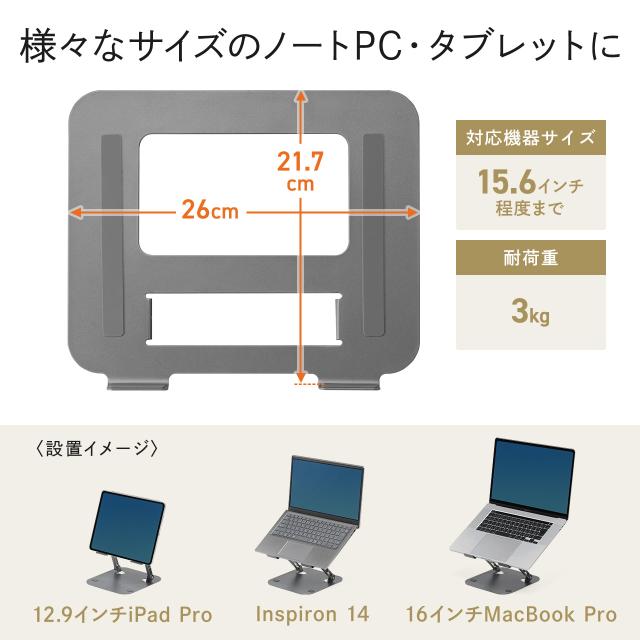 ⇒ご購入の前にご確認下さいノートパソコンの高さを上げて画面を見やすくできるノートパソコンスタンド。頑丈なスチール製はマグネット製品の取り付けもできます。無段階で角度と高さを使用環境に合わせて調整可能。15.6インチまでのノートパソコンとタブレットに対応。【WEB限定商品】