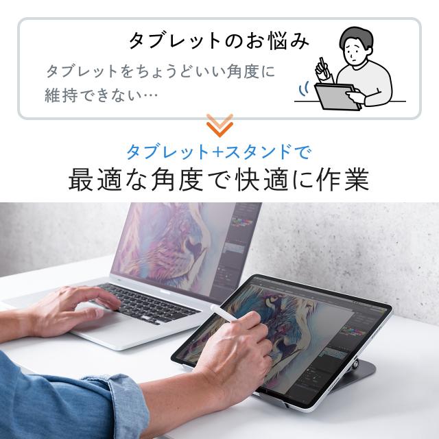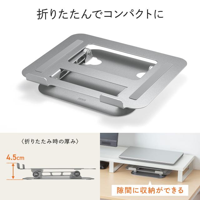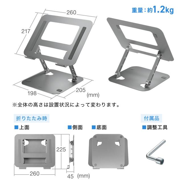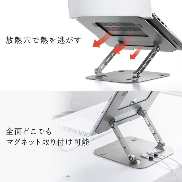 ノートパソコンスタンド ノートPC スチール製 タブレットスタンド 折りたたみ式 持ち運び 無段階 角度調整 高さ調整 姿勢改善 卓上 マグネット製品[200-STN077]