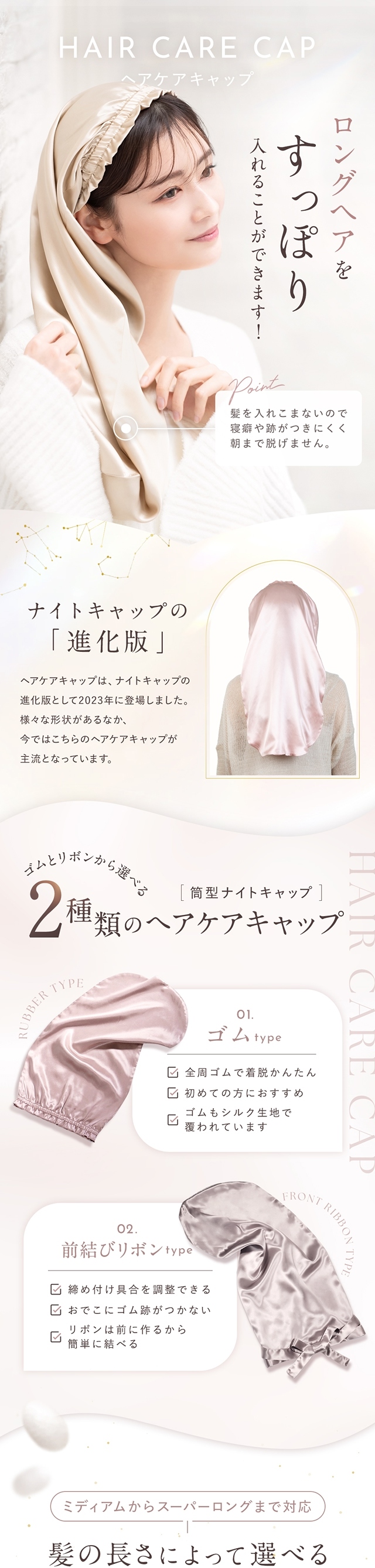 睡眠中の髪をしっとり保湿し、乾燥や刺激からからやさしく守ります。